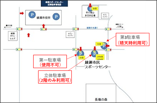〇 駐車場 駐車スペースは非常に少ないので、公共機関をご利用願います。 車でお越しの際は、第2立体駐車場(2Fのみ駐車可)又は屋外の第3駐車場(晴天時のみ使用可)をご使用ください。 満車の場合は公共の有料駐車場をご利用ください。 スポーツセンターホームページ ※ 路上駐車による警察通報やスポーツセンター横の運送会社駐車場に 誤って停めることで運送会社との間の警察沙汰トラブルが多発して おります。極力注意願います。 |