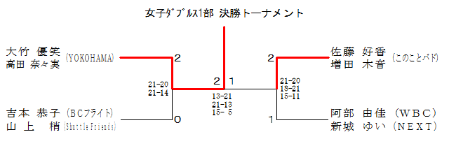 | 女子ダブルス1部 Bブロック | 阿部 新城 | 吉本 山上 | 篠原 大槻 | 順位 |